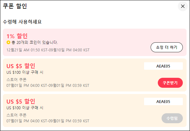 | 알리익스프레스 프로모션코드 할인쿠폰 :: 7월 알급날 (0) | 2024.07.25 |