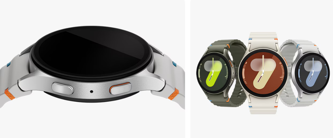 삼성 갤럭시 워치7의 디자인은 전작과 크게 달라진 점은 없지만, 새로운 스티치 밴드와 워치페이스를 통해 약간의 변화를 주었습니다. 반면, 갤럭시 워치 울트라는 아웃도어 디자인을 고려한 새로운 디자인과 티타늄 프레임을 적용하여 내구성을 강화하였습니다. 울트라는 모서리에 쿠션 디자인을 적용하여 해발 마이너스 고도 500미터에서 해발 9000미터까지 사용할 수 있는 내구성을 갖추고 있습니다.