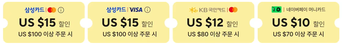 - KB국민 Master 카드 : $80 이상 주문시 $12 할인